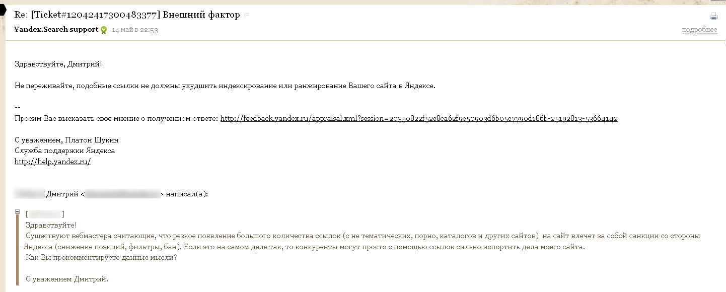 Quote (ale62055584) Имеется ввиду каталоги сайтов Это я и имел ввиду) Quote (ale62055584) хотите верьте, хотите нет Собственно я сужу по личному опыту и по опыту других вебматеров. Для тех кто еще думает, что большие прогоны приведут к бану или фильтру (к ГС это не относится): Quote Здравствуйте! Существуют вебмастера считающие, что резкое появление большого количества ссылок (с не тематических, порно, каталогов и других сайтов) на сайт влечет за собой санкции со стороны Яндекса (снижение позиций, фильтры, бан). Если это на самом деле так, то конкуренты могут просто с помощью ссылок сильно испортить дела моего сайта. Как Вы прокомментируете данные мысли? *** Здравствуйте, Дмитрий! Не переживайте, подобные ссылки не должны ухудшить индексирование или ранжирование Вашего сайта в Яндексе. Прикрепления: