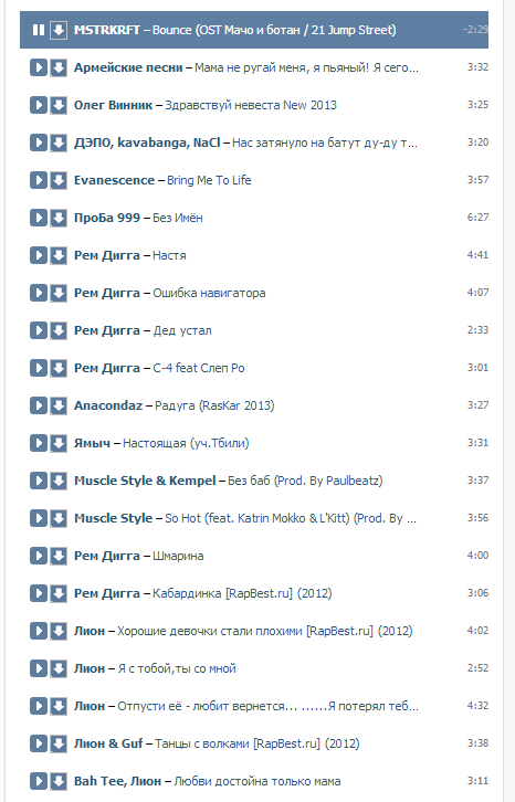 Итак, выкладываем свои любимые названия песен или клипы, которые Вам нравятся.