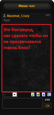 Здравствуйте, у меня проблема с мини-чатом, сквозь его блок проглядывает "бэкграунд", как это исправить? Заранее огромное спасибо.