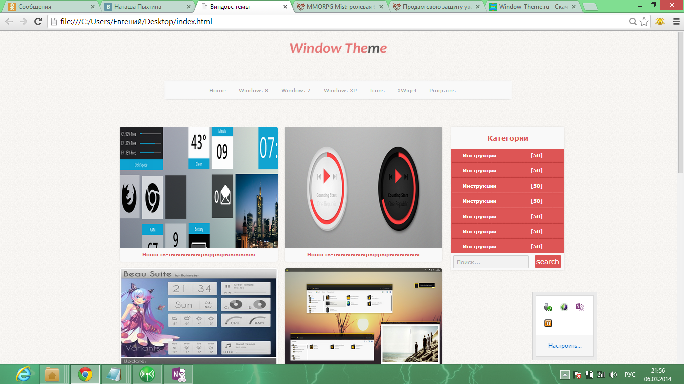 ![]() Добавлено (2014-Мар-13, 13:23) Код <center><div class="conre"> <img class="imd" src="Luana-icon.png" alt="Image Title" /> <a class="ssl" href="">Новость-тыыыыыырыррырыыыыыы</a> </div> </center> Код .conre{ width: 350px; height: 300px; background: #f9f9f9; border-radius: 5px; -moz-box-shadow:0 0 6px rgba(0,0,0,0.1); -webkit-box-shadow:0 0 6px rgba(0,0,0,0.1); box-shadow:0 0 6px rgba(0,0,0,0.1); float: left; margin-left: 15px; margin-top: 0px; margin-bottom: 15px; } .imd{ width: 350px; height: 250px; border-radius: 5px 5px 0 0; position: relative; overflow:hidden; } |