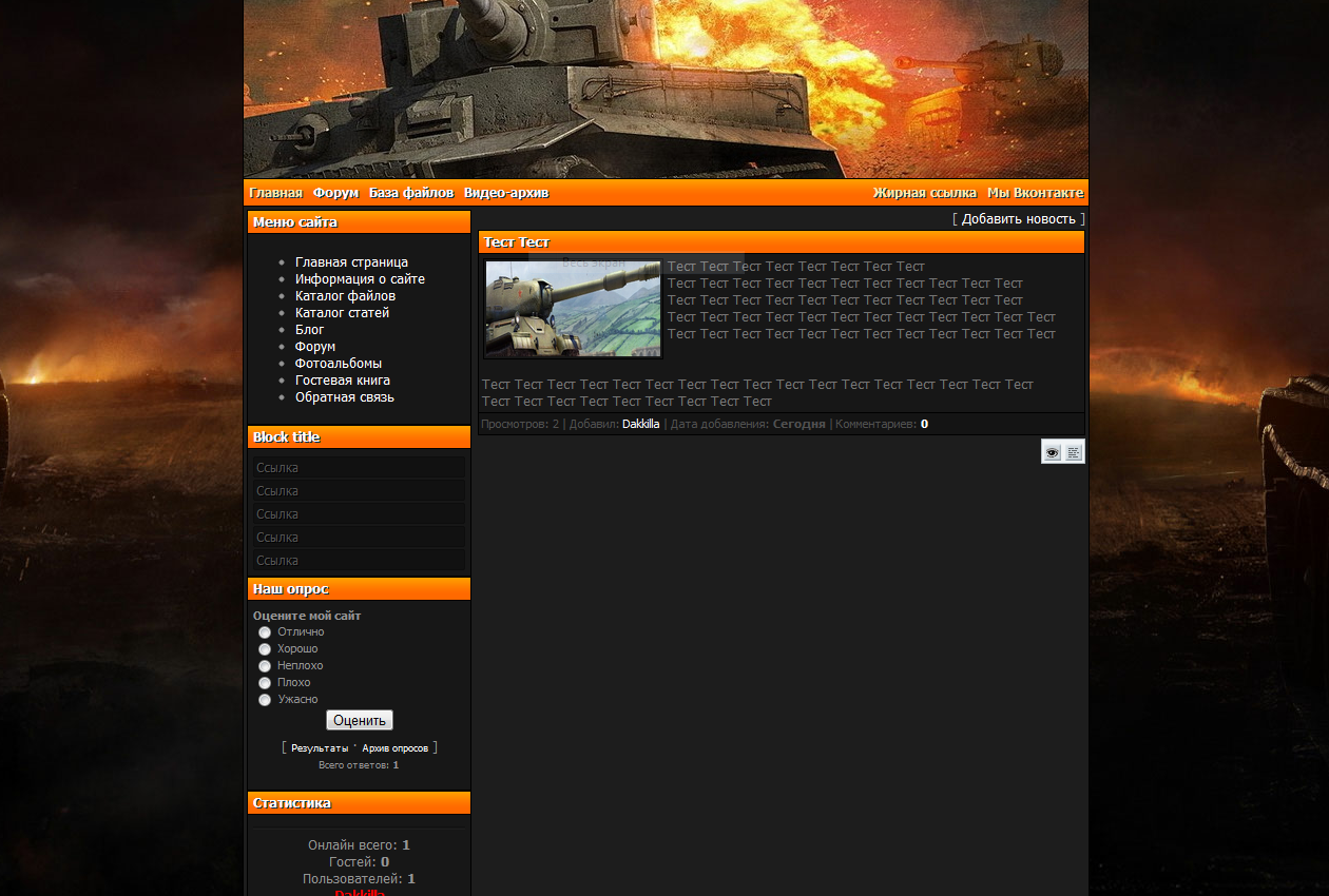 Второй(2)скриншот установленного на сайт шаблона на тему World Of Tanks