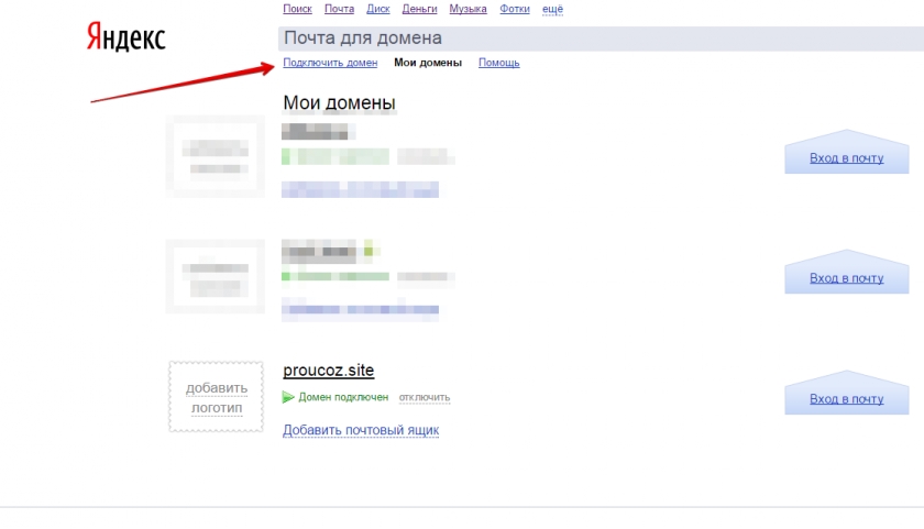 Сперва переходим на https://pdd.yandex.ru/ и авторизовываемся под своим аккаунтом, если его нет — создаем. Жмем на ссылку «Подключить домен»: